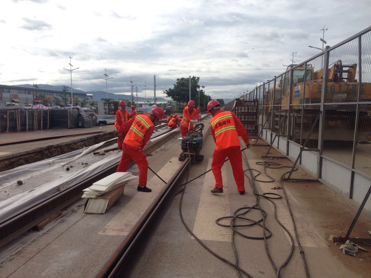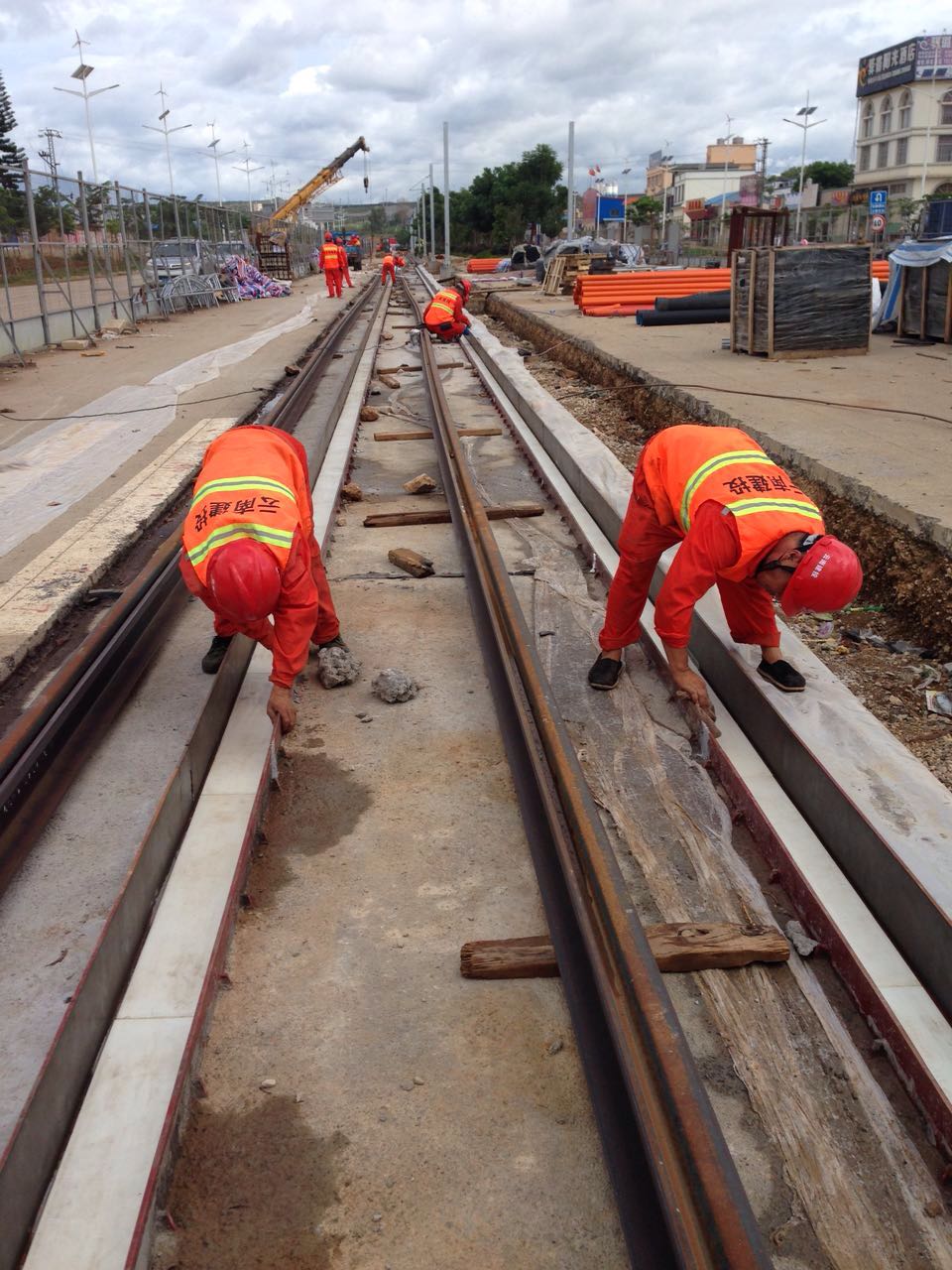 供货合同确定以后,轨道工程公司领导迅速组织技术、质量、供应、工程等相关部门就线路应用方案进行专题研究,人、机、料、法、测全部准备到位,2016年7月1日开始配合安装公司进行安装。截止到7月12日上午,雨过铺左、右线各100米嵌入式轨道系统钢制承轨槽已全部安装完毕,目前正在通过监理验收。同时,已顺利完成高分子A、B料的取样工作,并开始右线混凝土浇筑。