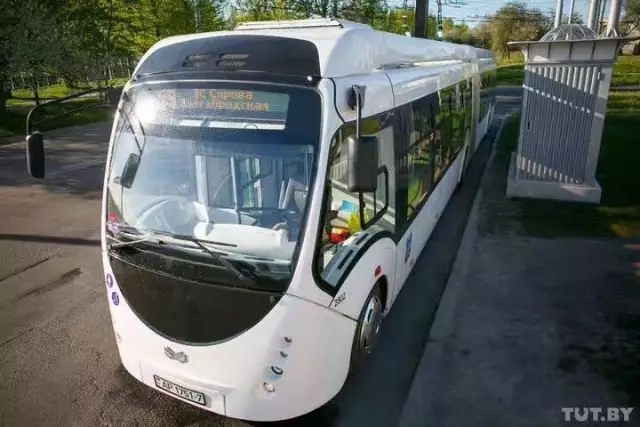2017年5月12日,白俄罗斯首都明斯克阳光明媚。乘坐59路公交车的市民们突然发现,这一天的公交车多了新面孔。流线型的造型,雪白的车身,除了时尚的外表,车顶的集电弓也与他们见惯的大辫子截然不同。