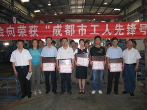 5月27日,成都市“工人先锋号”新津地区颁奖仪式在我公司举行,公司工会荣获“工人先锋号”称号。公司工会自2007年以来,积极引导广大员工参加成都市总工会开展的依靠主力军、建设主力军、发展主力军为目标,以创“一流工作、一流服务、一流业绩、一流团队”为内容的“工人先锋号”的活动,公司工会取得优异成绩。