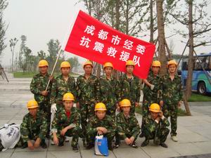 5月17日,公司组织了12名专业工程技术人员奔赴灾区都江堰和彭州,参加一线的抗震救灾工作,出发前,在公司举行了誓师大会,在会上提出了准军事化的纪律和作业要求。抗震救灾人员中,绝大部分是退伍军人,他们发扬不怕苦、不怕累艰苦奋斗的精神,在生活条件极不便利的情况下,密切配合当地政府开展灾后危房拆除和救援物资转运工作,受到了当地政府和群众的高度赞扬,圆满的完成了任务。四川省经贸委专门向我公司参加抗震救灾的志愿者每人发来了感谢信,以示表扬和鼓励。