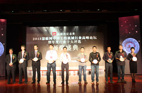 2013年中国工程机械行业十大评选颁奖盛典于10月14日举行。颁奖现场贵宾云集,行业领导、业内资深专家、各大媒体等汇聚一堂共同见证奖项揭晓。