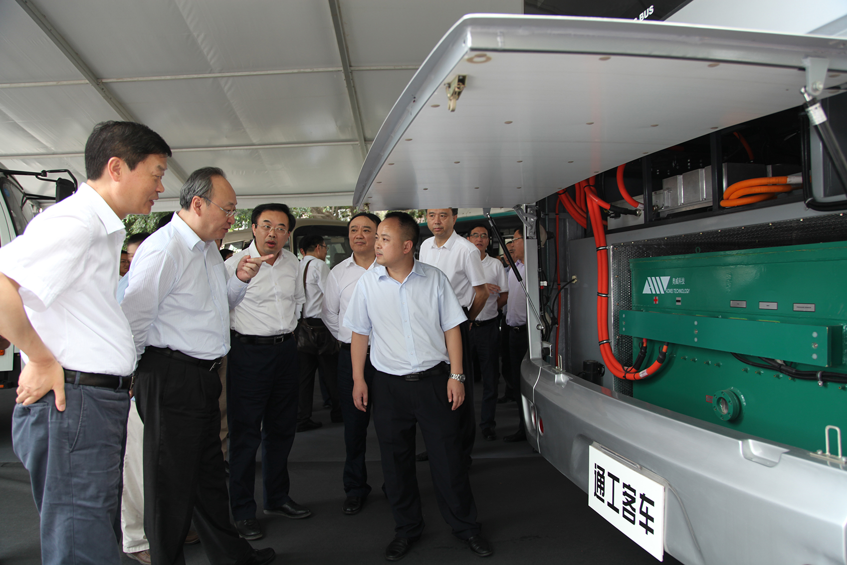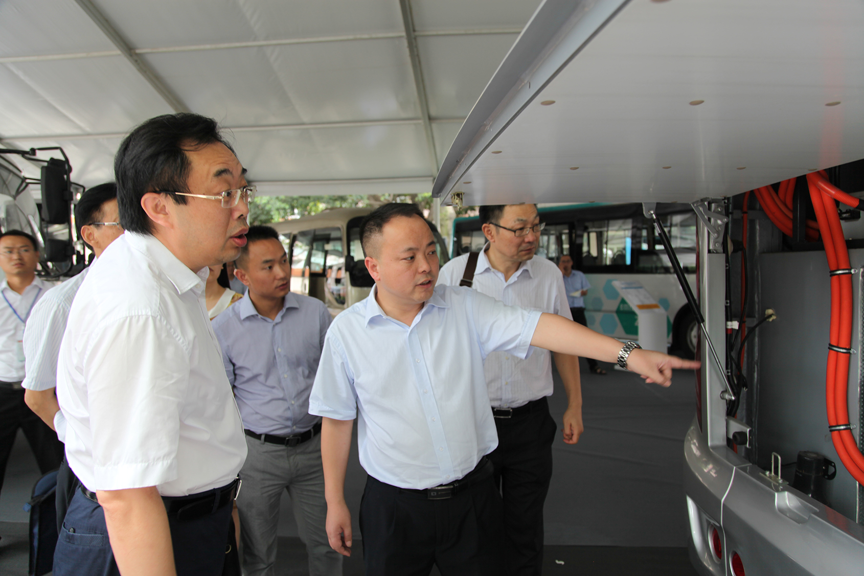 省委副书记、省长尹力莅临展示厅,参观指导了亚新(中国)通工高能超容快充城市客车。