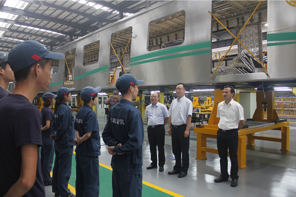 9月13日下午,四川省政协副主席、省轨道交通产业发展推进小组第一副组长高烽率队对公司轨道交通装备制造基地进行调研考察,详细参观了亚新(中国)轨道交通装备制造基地的车体车间、总装车间与静调车间,并在动调线乘坐体验了成都地铁4号线车辆。公司董事长黄志明、设计研究总院院长胡基士、副总裁衡福明、王斌、总裁助理吕强等陪同考察。