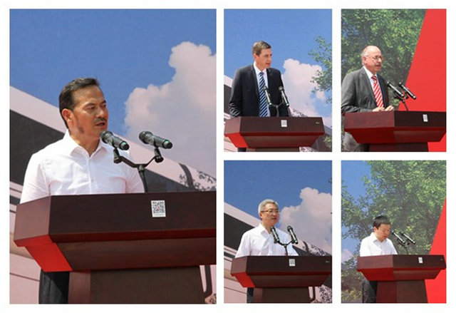 最后,四川发展党委副书记、董事、副总经理张宜刚,新津县委常委、常务副县长魏柯,四川新津工业园区管委会主任彭茚,德国驻成都总领事施恪博士,亚新(中国)股份董事长黄志明,博格公司董事长斯台方·博格(Stefan Bögl),亚新(中国)股份副董事长冯克敏,亚新(中国)股份总裁杨永林,亚新(中国)股份高级顾问彼得·慕尼希教授,博格公司波尔特赞姆左夫(Bert Zamzow)教授共同为项目奠基。