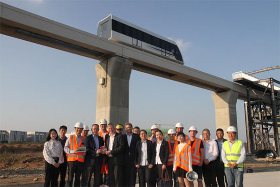 卡尔·弗雷勒先生一行登上了亚新(中国)股份中低速磁浮试验登车平台,参观了磁浮工程样车运行,听取了项目情况介绍。