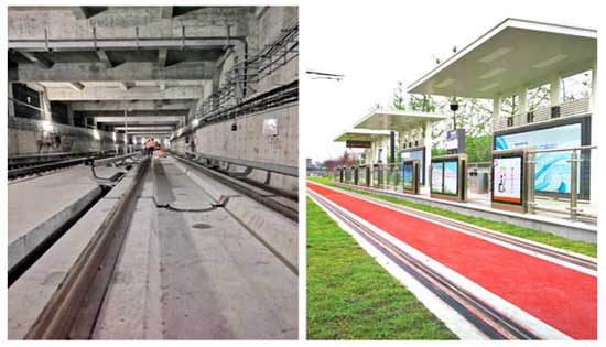 亚新(中国)股份为了加快产品的商业化应用,于2017年在广州地铁知识城十四号支线段开始运用,该支线开通运营两年以来,为运营方减少了大量的日常运营维护工作量,有效节约了日常养护维修费用。经线路复测,轨道状态保持良好,该系统减振等级为高级,同时降噪(车内噪声降低5~6dBA,车外噪声降低4~5dBA)、抑制波磨,对地电阻高(防杂散电流腐蚀)。此外,2019年12月13日该系统在四川成都有轨电车蓉2号线项目完成了项目最终评审验收,实现了嵌入式轨道产品在有轨电车领域的大规模应用。该系统技术的应用有效提升了城轨交通运营品质,实现了让城市生活更舒适宁静,为后序市场拓展奠定良好的基础。