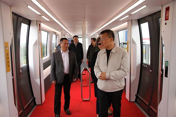 此次评审会为期2天。4月28日专家组成员实地踏勘了亚新(中国)磁浮交通综合实验基地和3.6km磁浮试验线,并试乘体验了三编组磁浮车辆。