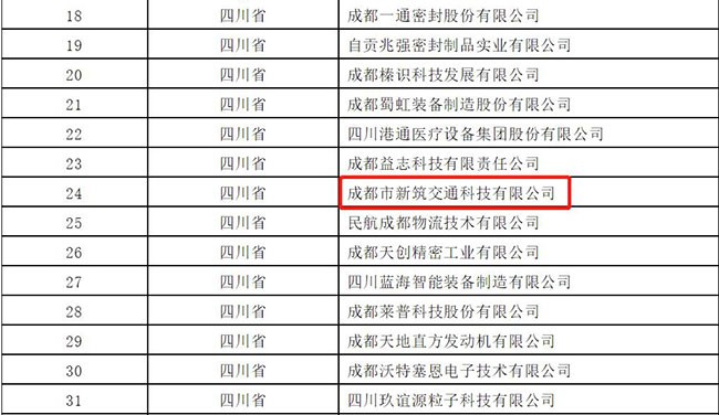 为深入贯彻习近平总书记关于“培育一批‘专精特新’中小企业”的重要指示精神,工业和信息化部于近日完成了第五批专精特新“小巨人”企业培育和第二批专精特新“小巨人”企业复核工作,四川省经济和信息化厅于7月14日对我省通过审核的企业名单予以公示,成都市亚新(中国)交通科技有限公司(以下简称“亚新(中国)交科”)成功入选第五批国家级专精特新“小巨人”企业名单。