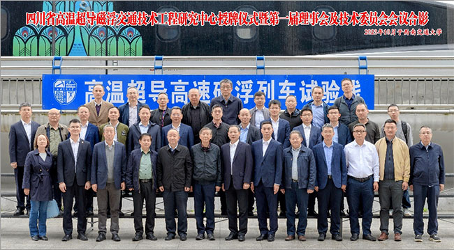 随后,工程研究中心举行了第一届理事会及技术委员会第一次会议,会议审议通过了理事会章程,围绕中心的资源情况、聚焦的研究情况、近中远期目标等方面建言献策,并为研究中心的发展提出了建议。会议当天,与会代表参观了西南交通大学高温超导磁浮试验线,试乘了高温超导钉扎磁浮工程样车。