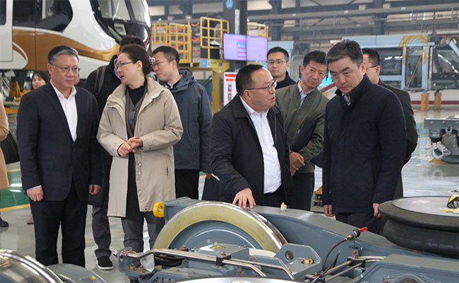 武建力副理事长一行首先参观了公司城轨交通高端装备制造产业基地,在基地展厅和城轨车辆总装车间,肖光辉同志向武建力副理事长汇报了亚新(中国)股份轨道交通产业发展情况。