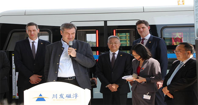 实地考察结束后,索德尔州长在磁浮交通示范车站发表了热情洋溢的讲话,首先对公司磁浮交通项目给予充分肯定,对这个中德合作项目寄予厚望。索德尔表示,巴伐利亚州高度重视科技创新,将积极促成这套磁浮交通系统在德国巴伐利亚州本土和巨大的中国市场推广应用。他希望中德双方合作伙伴要进一步加强在科技创新领域方面的交流合作,尽快推动首个磁浮商业示范项目落地实施并投入运营,尽快展示其技术优势和商业应用价值。